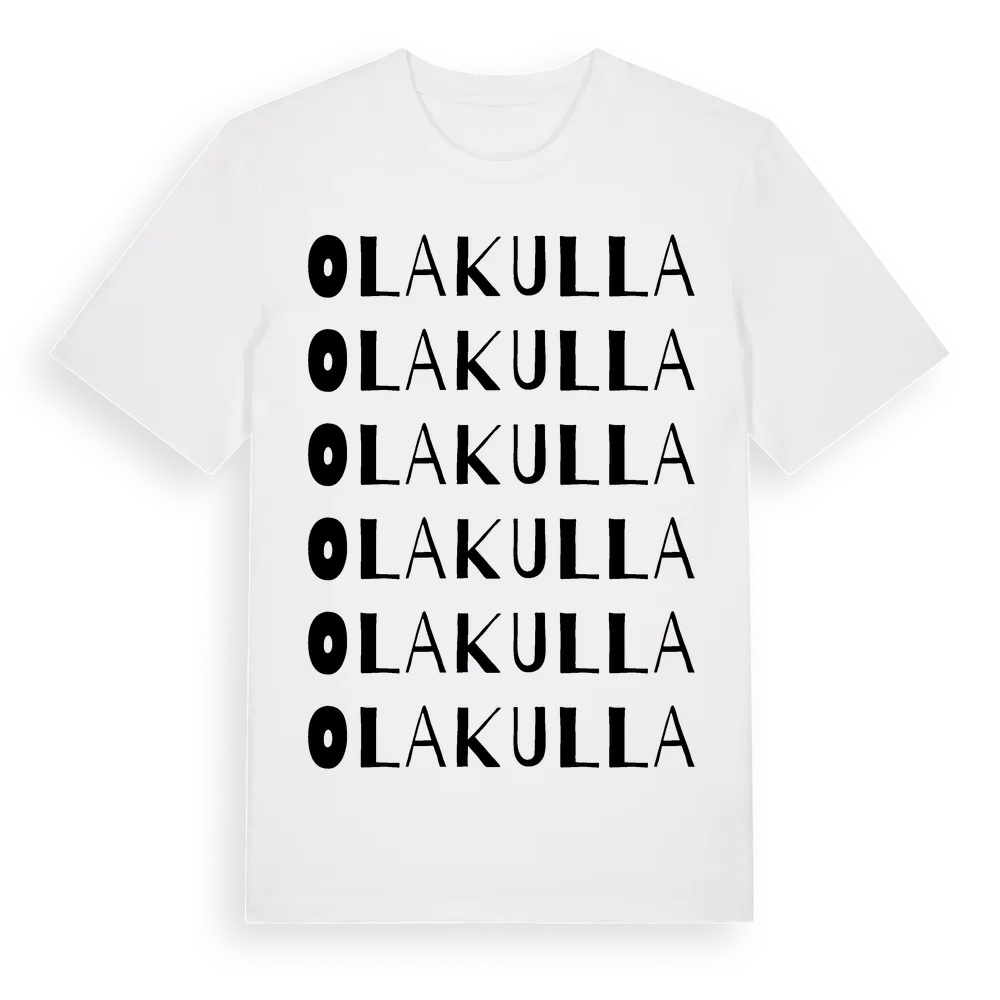 Olakulla ordlek t-shirt är inspirerad av Olakulla i Västra Götalands län, Sverige. Tröjan är designad för dig som har en speciell koppling till platsen – oavsett om du bor här, har rötterna här eller bara älskar Olakulla.