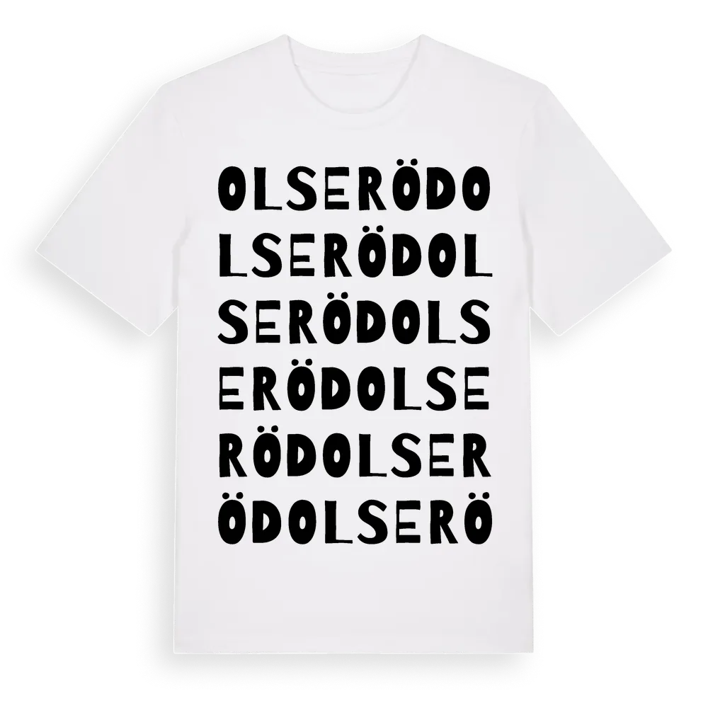 Olseröd ordlek t-shirt är inspirerad av Olseröd i Västra Götalands län, Sverige. Tröjan är designad för dig som har en speciell koppling till platsen – oavsett om du bor här, har rötterna här eller bara älskar Olseröd.