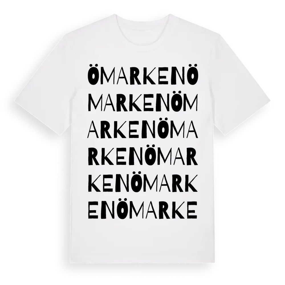 Ömarken ordlek t-shirt är inspirerad av Ömarken i Västra Götalands län, Sverige. Tröjan är designad för dig som har en speciell koppling till platsen – oavsett om du bor här, har rötterna här eller bara älskar Ömarken.