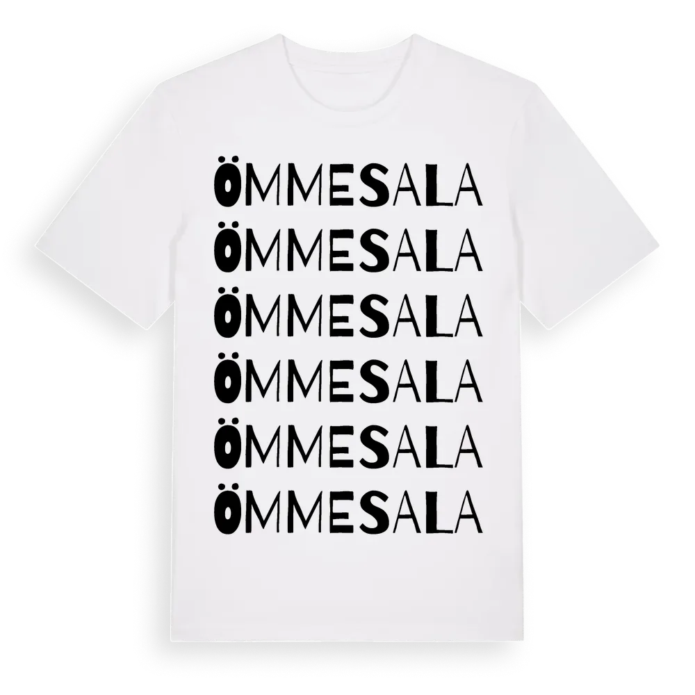 Ömmesala ordlek t-shirt är inspirerad av byn Ömmesala i Västra Götalands län, Sverige. Tröjan är designad för dig som har en speciell koppling till platsen – oavsett om du bor här, har rötterna här eller bara älskar Ömmesala.