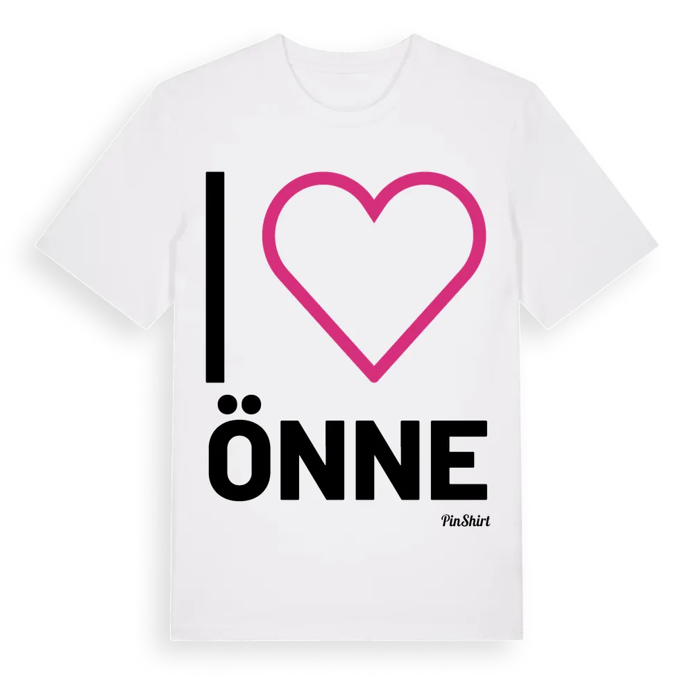 Det klassiska "I ❤ Önne"-motivet i stort format som täcker hela bröstet. För dig som vill visa kärleken till Önne på riktigt. Premium bomull, unisex – från Önne i Västra Götalands län.