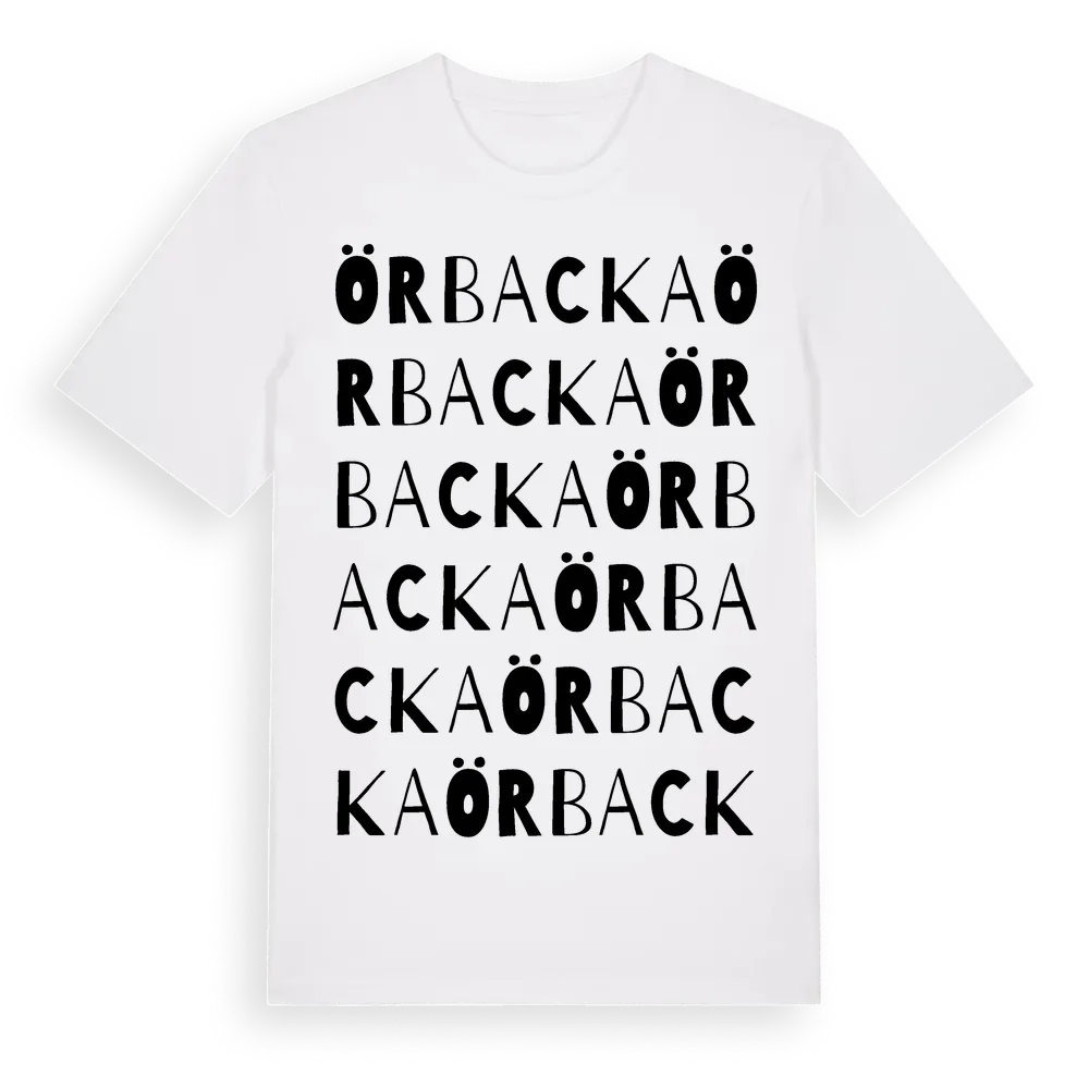 Örbacka ordlek t-shirt är inspirerad av byn Örbacka i Västra Götalands län, Sverige. Tröjan är designad för dig som har en speciell koppling till platsen – oavsett om du bor här, har rötterna här eller bara älskar Örbacka.