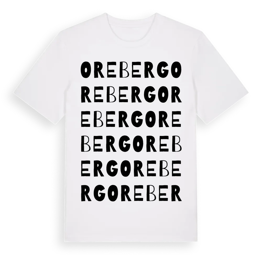 Oreberg ordlek t-shirt är inspirerad av byn Oreberg i Västra Götalands län, Sverige. Tröjan är designad för dig som har en speciell koppling till platsen – oavsett om du bor här, har rötterna här eller bara älskar Oreberg.