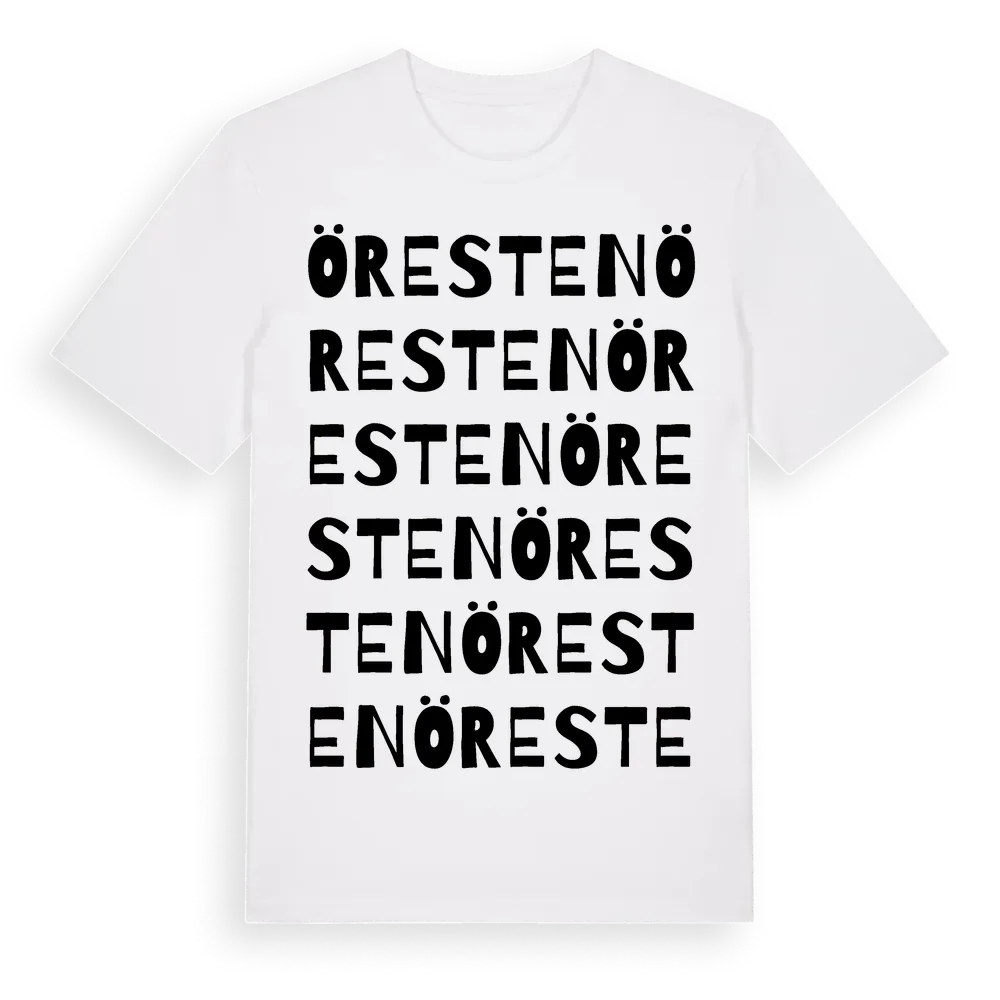 En ordlek byggd på Örestens namn. Subtilt och klurig – ett motiv som bara de som verkligen känner platsen fullt ut förstår. Premium bomull, unisex – från Öresten i Västra Götalands län.