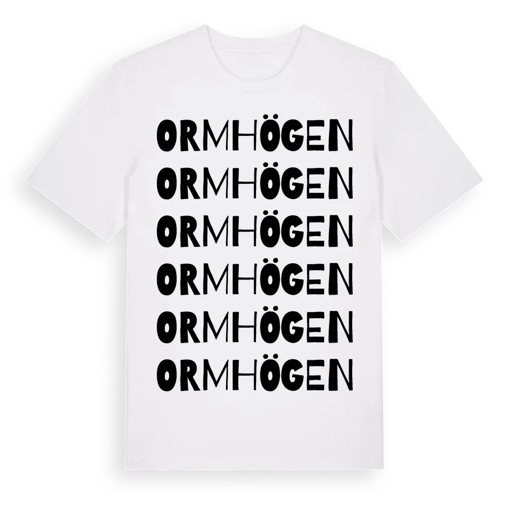 Ormhögen ordlek t-shirt är inspirerad av Ormhögen i Västra Götalands län, Sverige. Tröjan är designad för dig som har en speciell koppling till platsen – oavsett om du bor här, har rötterna här eller bara älskar Ormhögen.