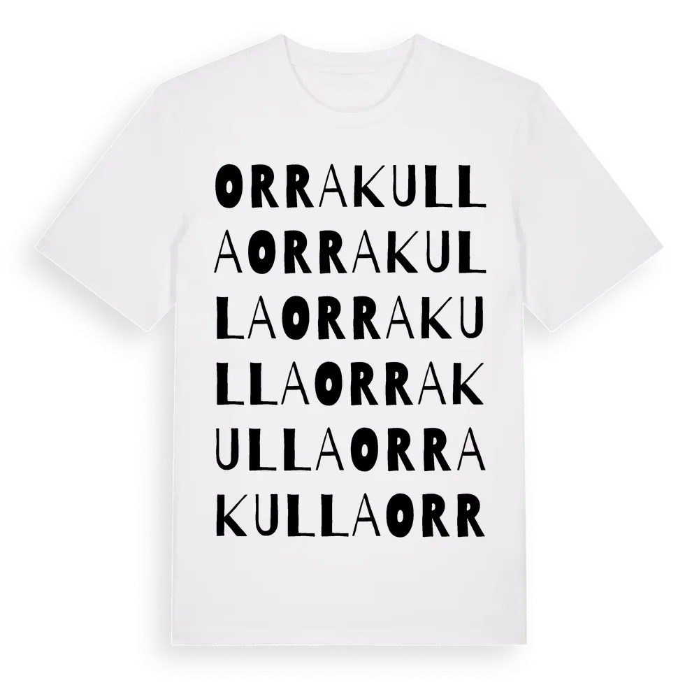 Orrakulla ordlek t-shirt är inspirerad av Orrakulla i Västra Götalands län, Sverige. Tröjan är designad för dig som har en speciell koppling till platsen – oavsett om du bor här, har rötterna här eller bara älskar Orrakulla.