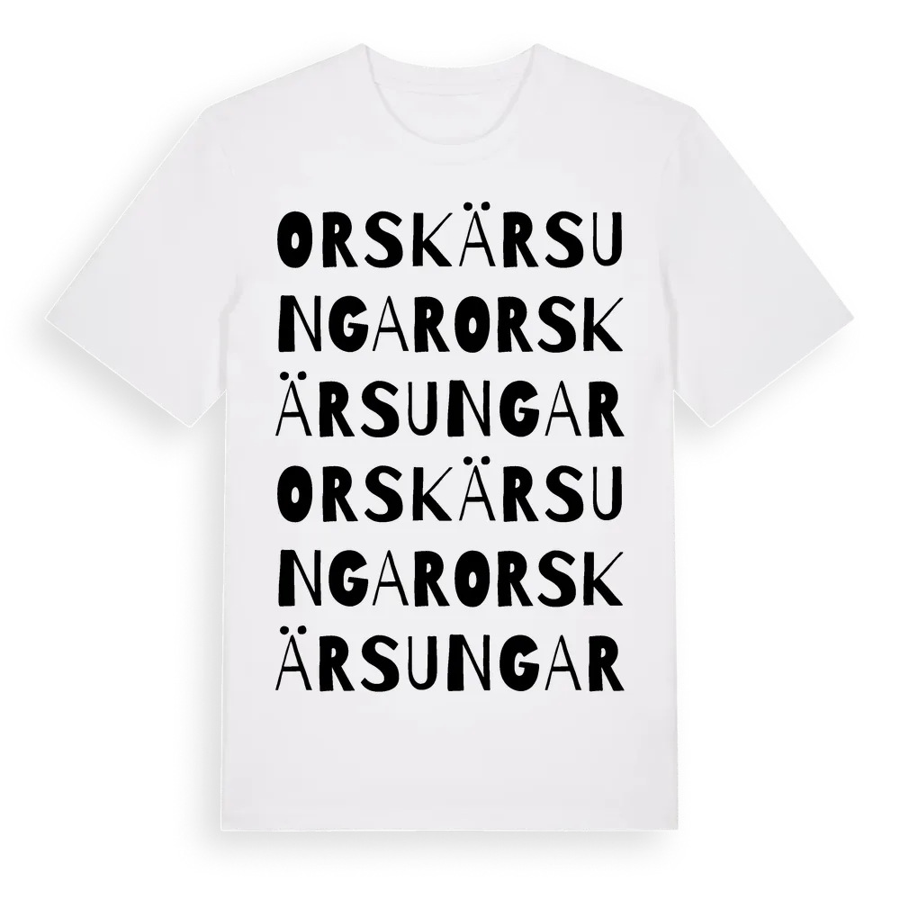 Orskärs Ungar ordlek t-shirt är inspirerad av Orskärs Ungar i Västra Götalands län, Sverige. Tröjan är designad för dig som har en speciell koppling till platsen – oavsett om du bor här, har rötterna här eller bara älskar Orskärs Ungar.