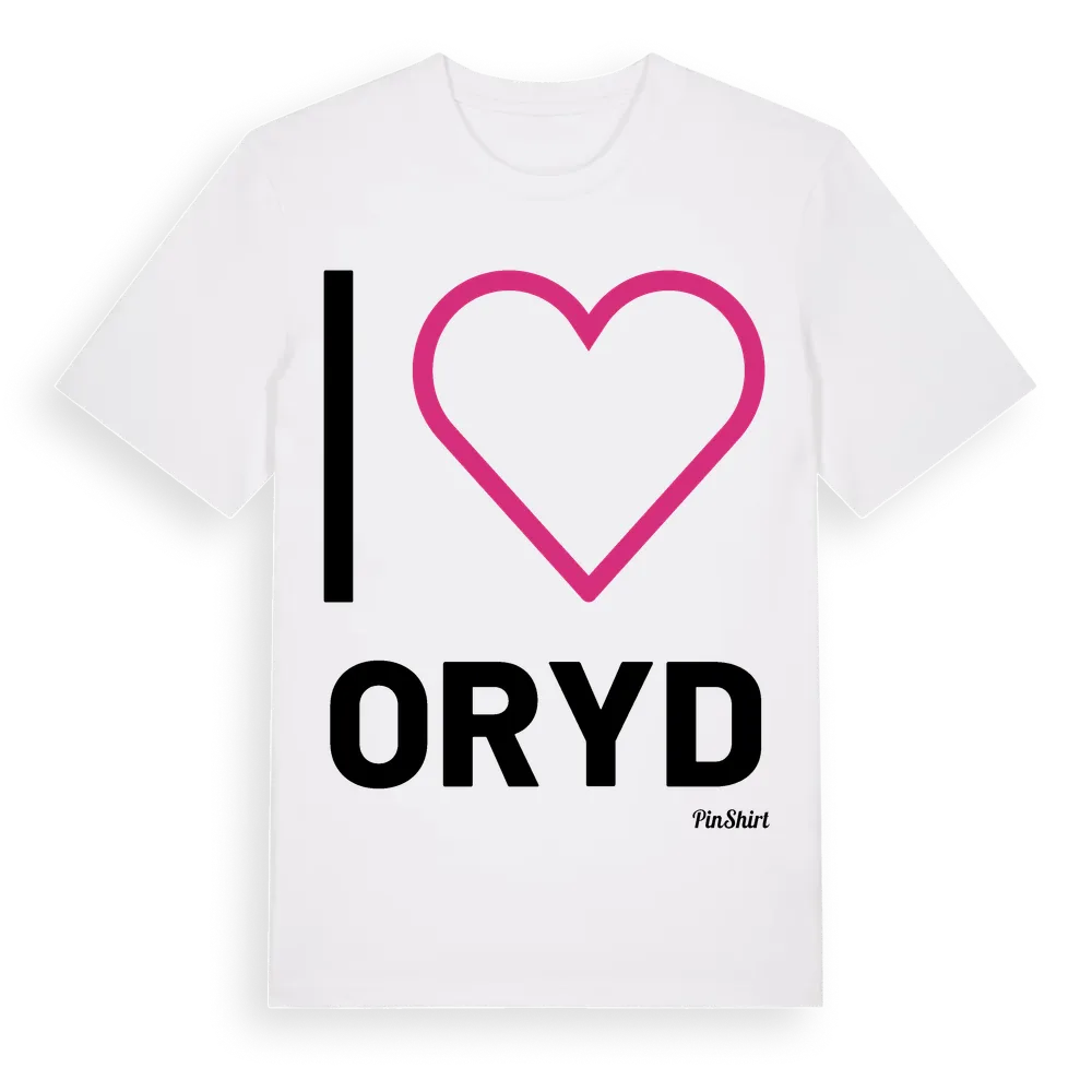 Det klassiska "I ❤ Oryd"-motivet i stort format som täcker hela bröstet. För dig som vill visa kärleken till Oryd på riktigt. Premium bomull, unisex – från byn Oryd i Västra Götalands län.