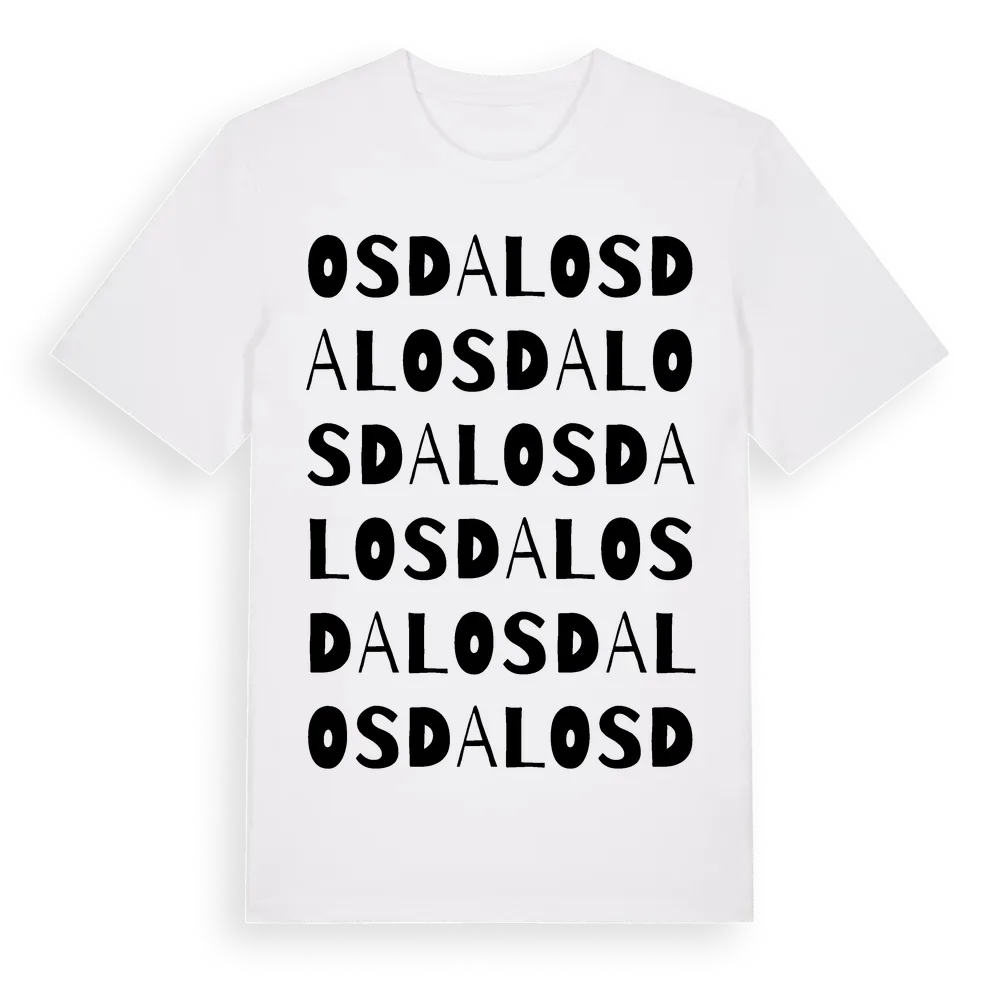 Osdal ordlek t-shirt är inspirerad av Osdal i Västra Götalands län, Sverige. Tröjan är designad för dig som har en speciell koppling till platsen – oavsett om du bor här, har rötterna här eller bara älskar Osdal.
