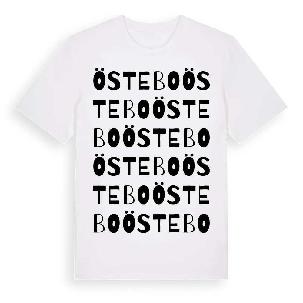 En ordlek byggd på Östebos namn. Subtilt och klurig – ett motiv som bara de som verkligen känner platsen fullt ut förstår. Premium bomull, unisex – från Östebo i Västra Götalands län.
