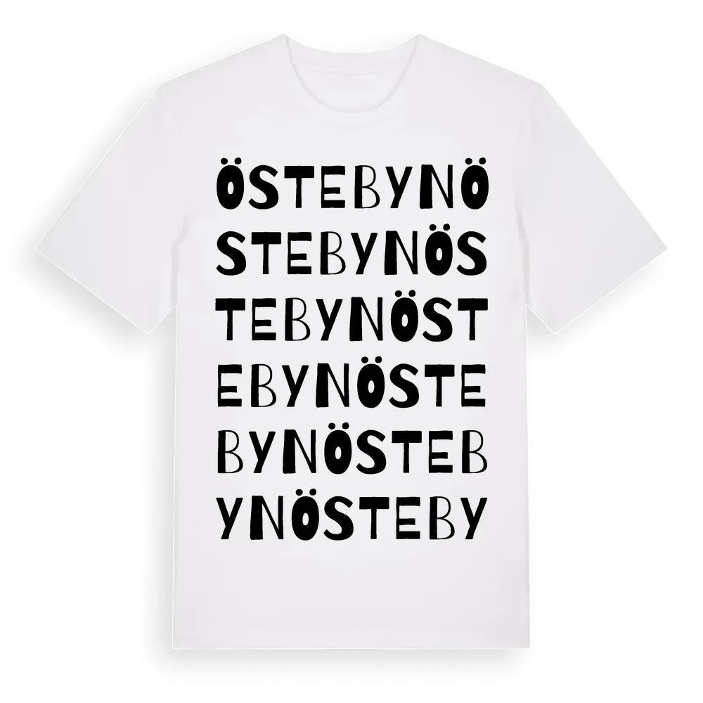 En ordlek byggd på Östebyns namn. Subtilt och klurig – ett motiv som bara de som verkligen känner platsen fullt ut förstår. Premium bomull, unisex – från byn Östebyn i Västra Götalands län.