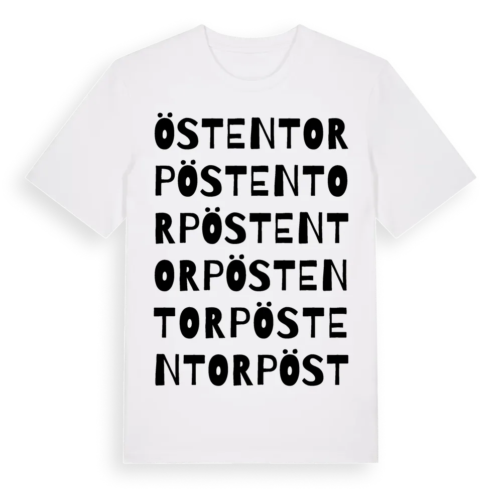 En ordlek byggd på Östentorps namn. Subtilt och klurig – ett motiv som bara de som verkligen känner platsen fullt ut förstår. Premium bomull, unisex – från byn Östentorp i Västra Götalands län.