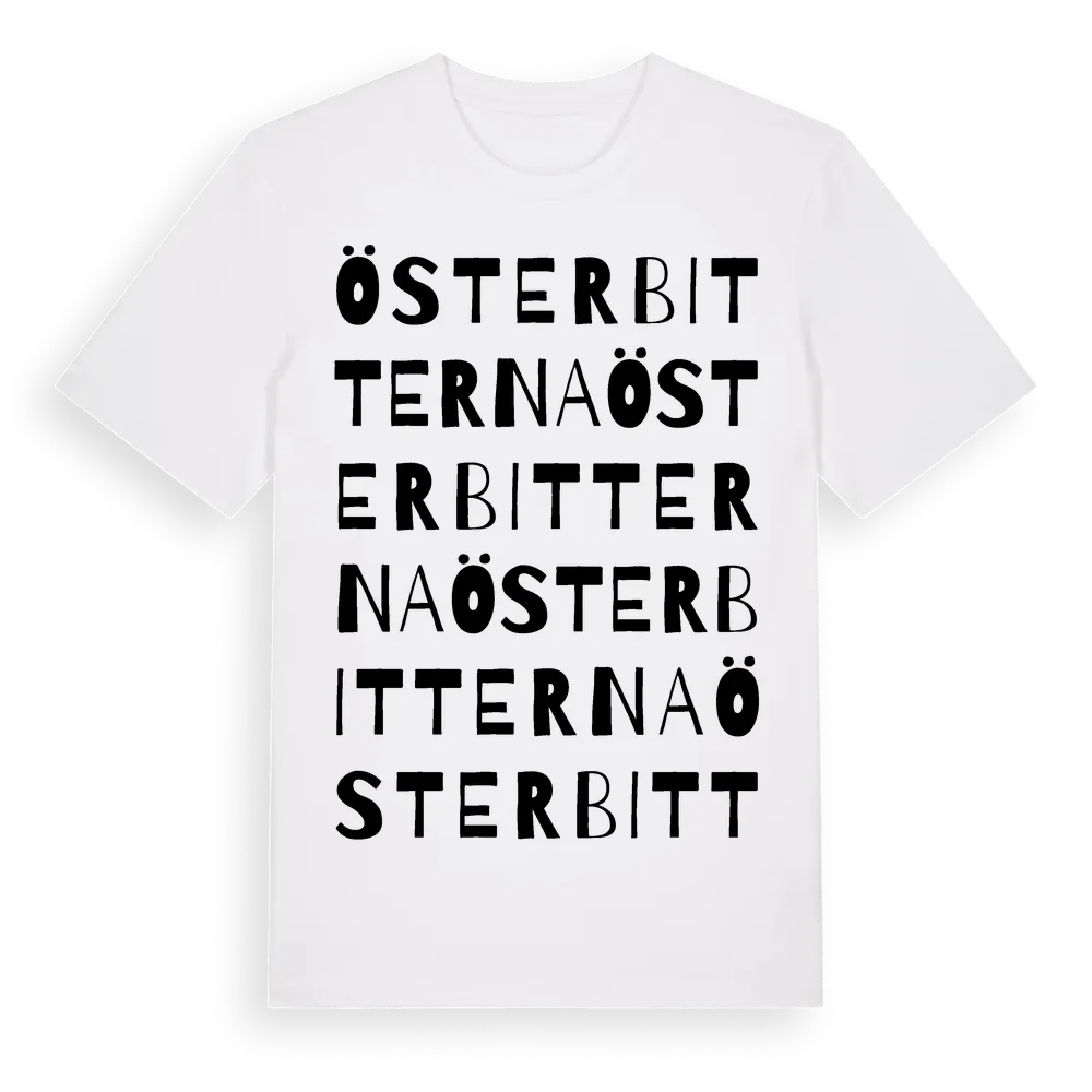 Österbitterna ordlek t-shirt är inspirerad av byn Österbitterna i Västra Götalands län, Sverige. Tröjan är designad för dig som har en speciell koppling till platsen – oavsett om du bor här, har rötterna här eller bara älskar Österbitterna.