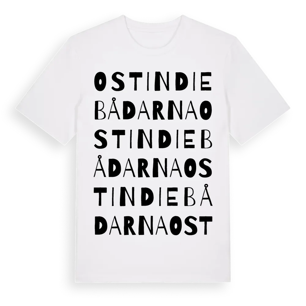 Ostindiebådarna ordlek t-shirt är inspirerad av Ostindiebådarna i Västra Götalands län, Sverige. Tröjan är designad för dig som har en speciell koppling till platsen – oavsett om du bor här, har rötterna här eller bara älskar Ostindiebådarna.