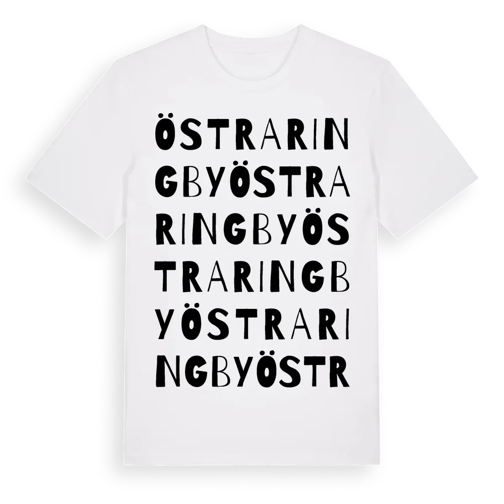 Östra Ringby ordlek t-shirt är inspirerad av Östra Ringby i Västra Götalands län, Sverige. Tröjan är designad för dig som har en speciell koppling till platsen – oavsett om du bor här, har rötterna här eller bara älskar Östra Ringby.