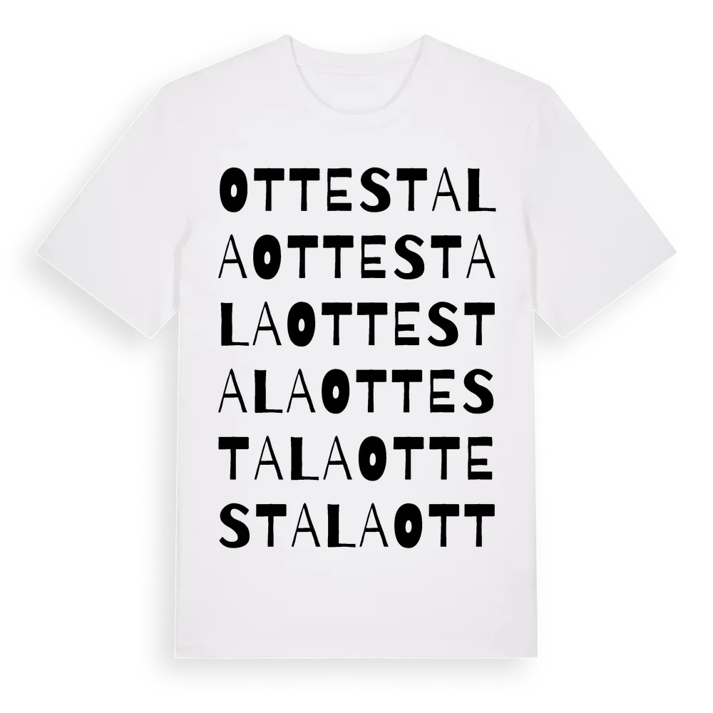 Ottestala ordlek t-shirt är inspirerad av byn Ottestala i Västra Götalands län, Sverige. Tröjan är designad för dig som har en speciell koppling till platsen – oavsett om du bor här, har rötterna här eller bara älskar Ottestala.