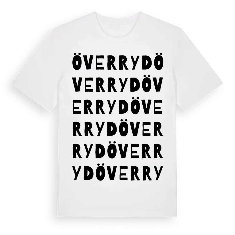 Överryd ordlek t-shirt är inspirerad av byn Överryd i Västra Götalands län, Sverige. Tröjan är designad för dig som har en speciell koppling till platsen – oavsett om du bor här, har rötterna här eller bara älskar Överryd.