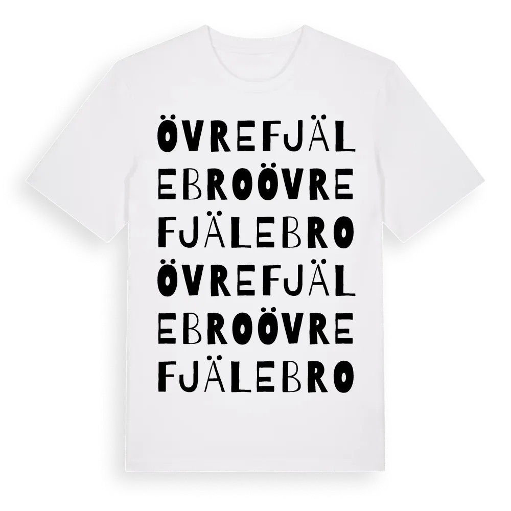 Övre Fjälebro ordlek t-shirt är inspirerad av Övre Fjälebro i Västra Götalands län, Sverige. Tröjan är designad för dig som har en speciell koppling till platsen – oavsett om du bor här, har rötterna här eller bara älskar Övre Fjälebro.