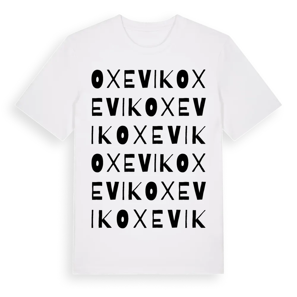 Oxevik ordlek t-shirt är inspirerad av Oxevik i Västra Götalands län, Sverige. Tröjan är designad för dig som har en speciell koppling till platsen – oavsett om du bor här, har rötterna här eller bara älskar Oxevik.