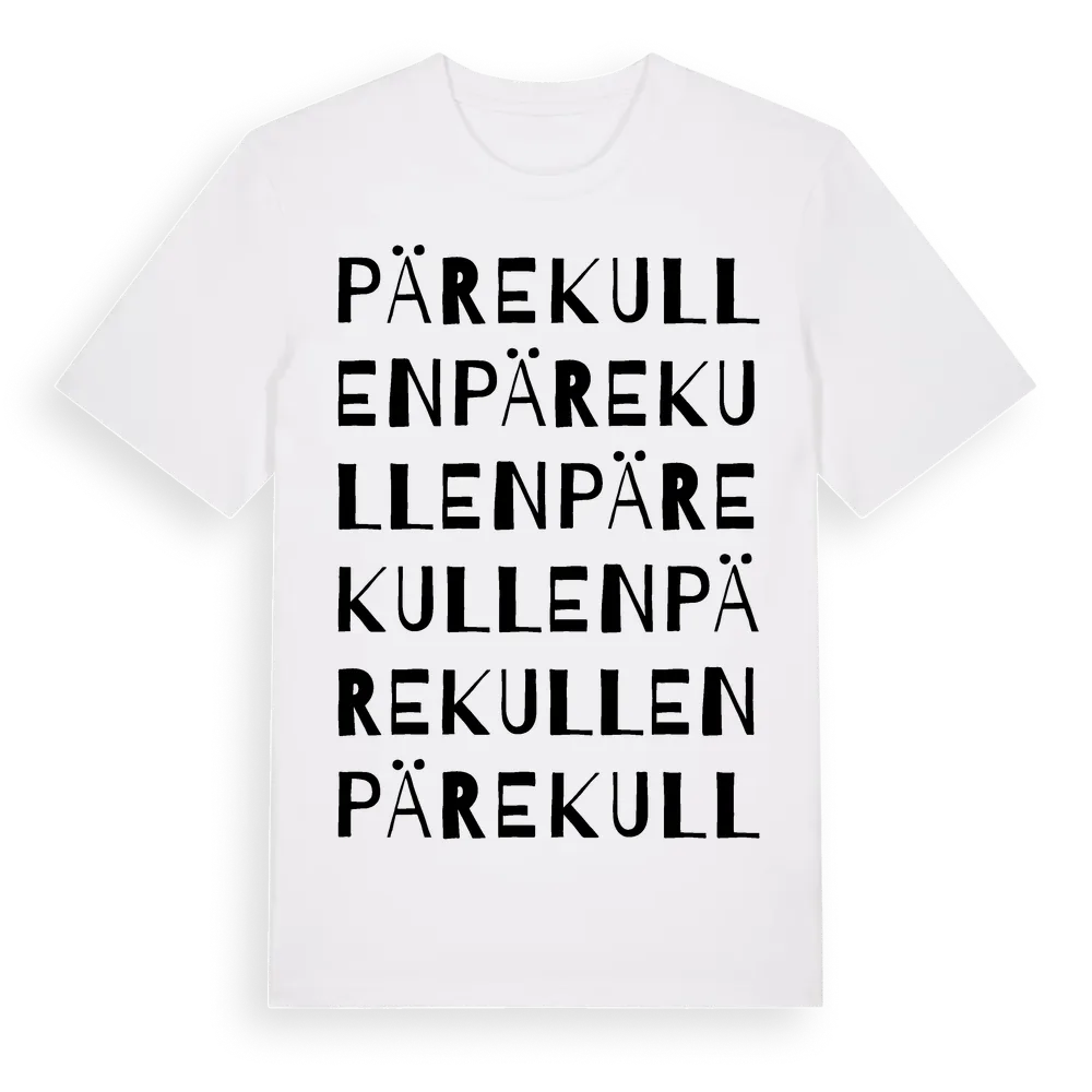 Pärekullen ordlek t-shirt är inspirerad av byn Pärekullen i Västra Götalands län, Sverige. Tröjan är designad för dig som har en speciell koppling till platsen – oavsett om du bor här, har rötterna här eller bara älskar Pärekullen.
