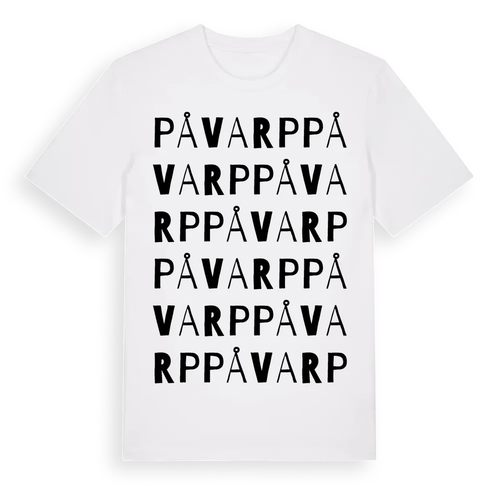 Påvarp ordlek t-shirt är inspirerad av Påvarp i Västra Götalands län, Sverige. Tröjan är designad för dig som har en speciell koppling till platsen – oavsett om du bor här, har rötterna här eller bara älskar Påvarp.