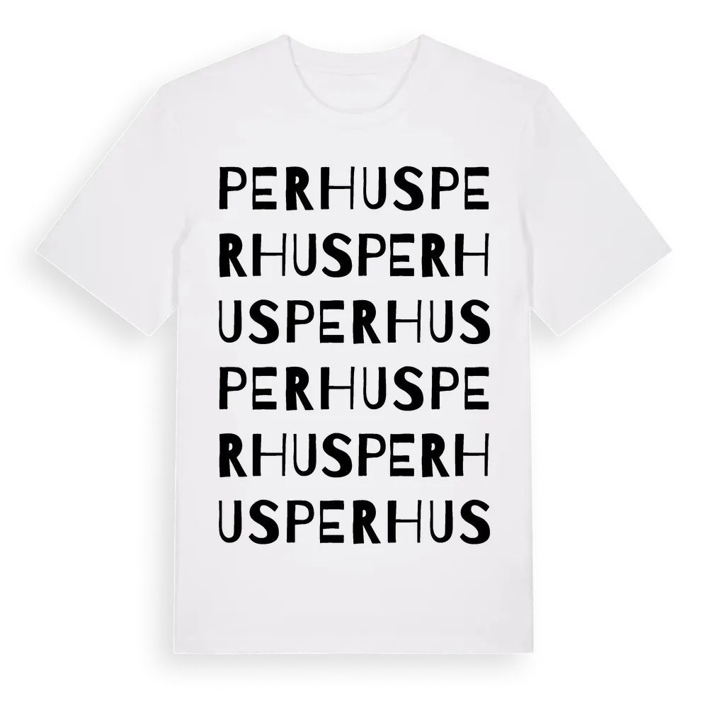 Perhus ordlek t-shirt är inspirerad av Perhus i Västra Götalands län, Sverige. Tröjan är designad för dig som har en speciell koppling till platsen – oavsett om du bor här, har rötterna här eller bara älskar Perhus.