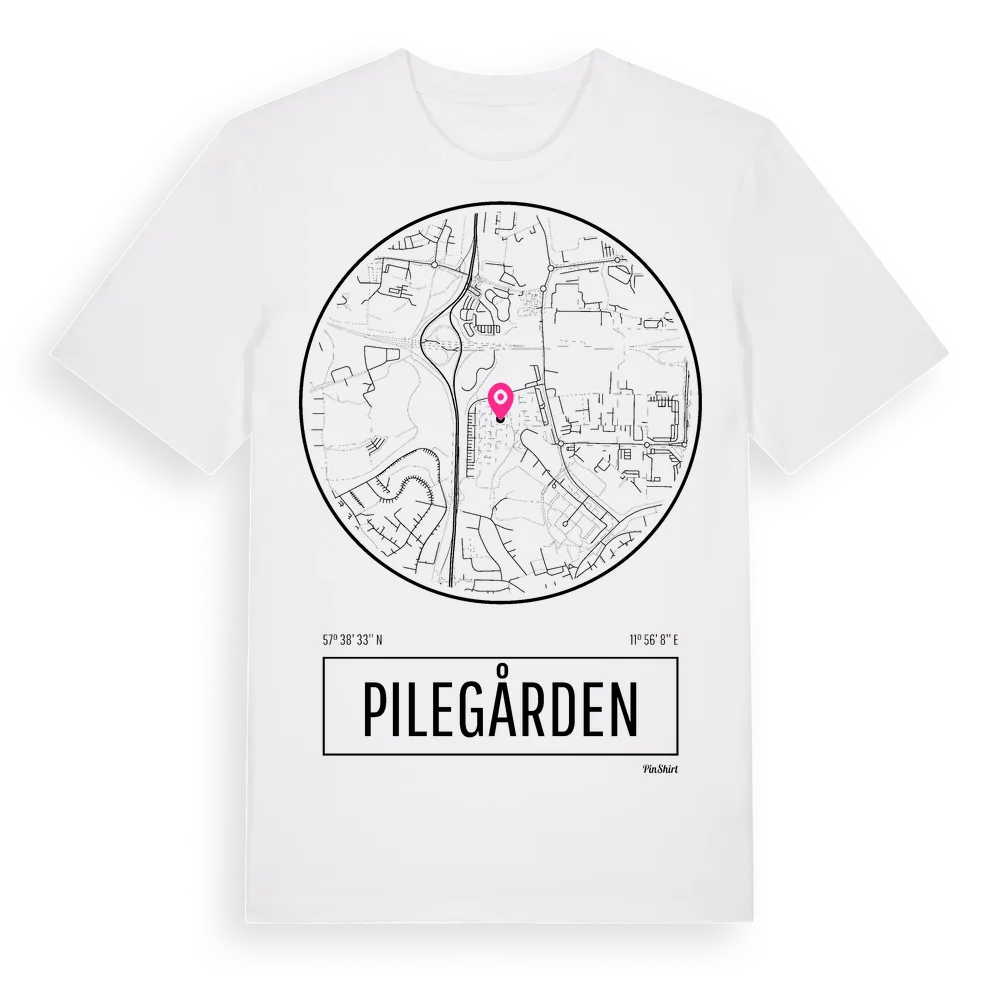 Pilegården t-shirt är inspirerad av stadsdelen Pilegården i Västra Götalands län, Sverige. Tröjan är designad för dig som har en speciell koppling till platsen – oavsett om du bor här, har rötterna här eller bara älskar Pilegården.