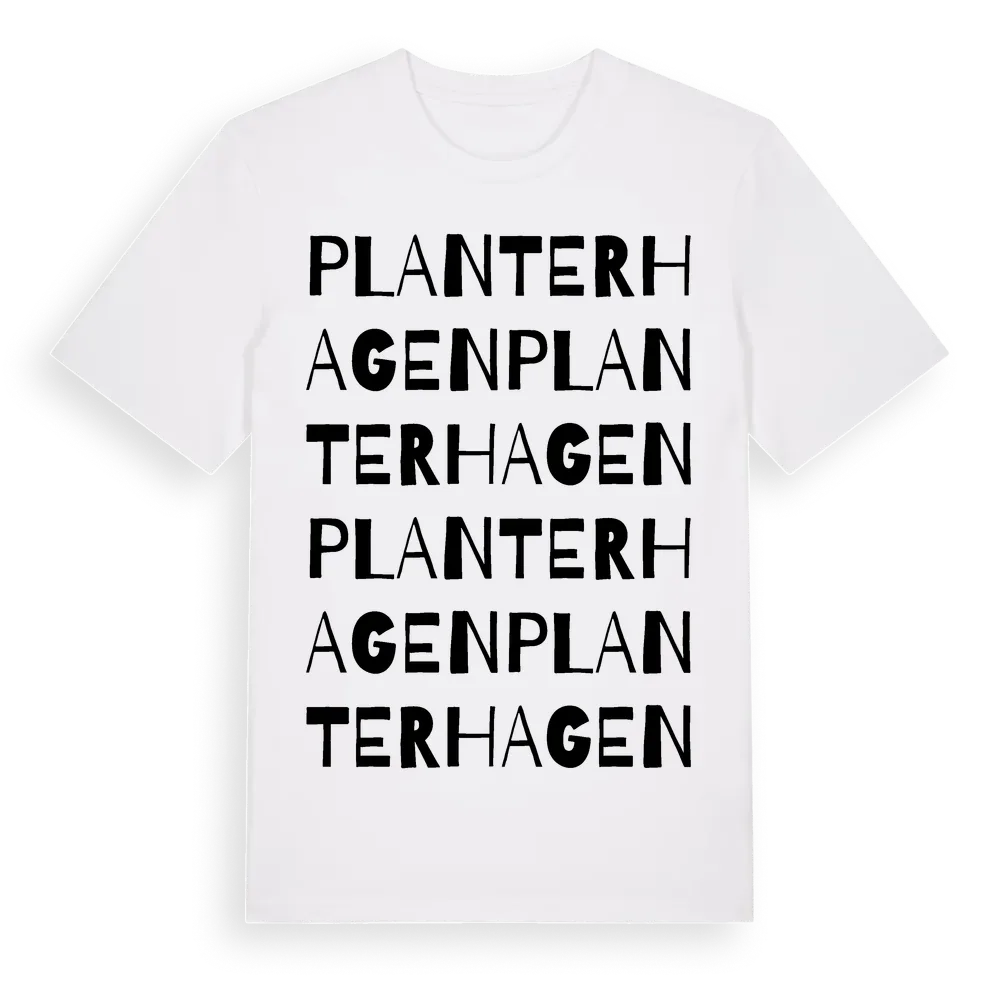 Planterhagen ordlek t-shirt är inspirerad av Planterhagen i Västra Götalands län, Sverige. Tröjan är designad för dig som har en speciell koppling till platsen – oavsett om du bor här, har rötterna här eller bara älskar Planterhagen.