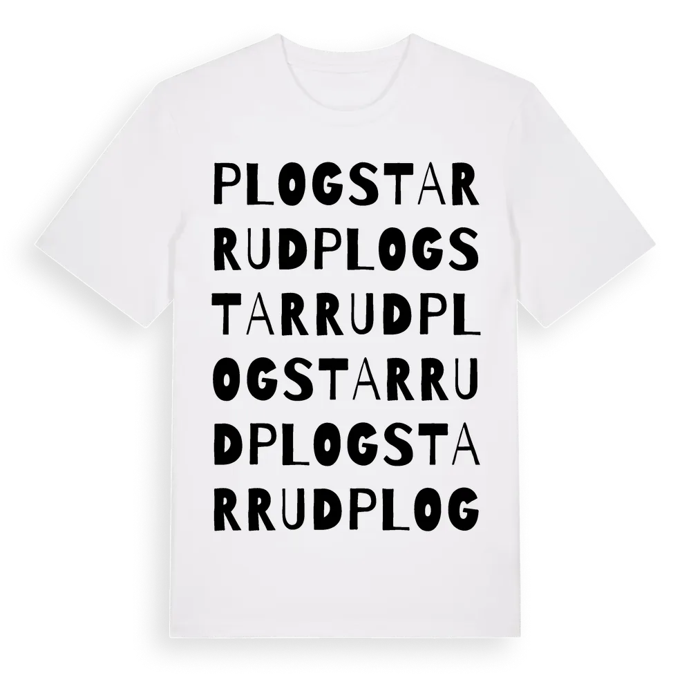 Plogstarrud ordlek t-shirt är inspirerad av Plogstarrud i Västra Götalands län, Sverige. Tröjan är designad för dig som har en speciell koppling till platsen – oavsett om du bor här, har rötterna här eller bara älskar Plogstarrud.