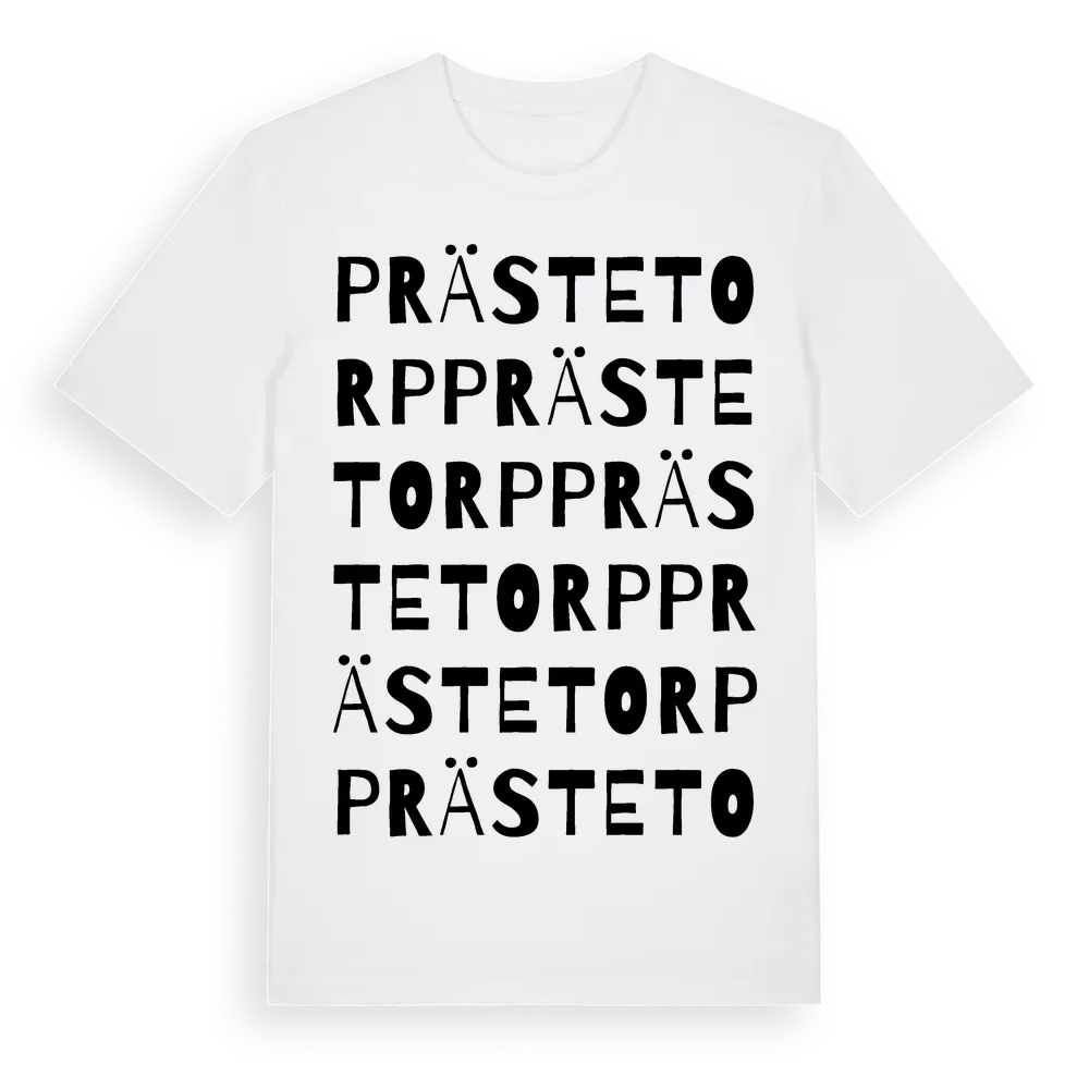 En ordlek byggd på Prästetorps namn. Subtilt och klurig – ett motiv som bara de som verkligen känner platsen fullt ut förstår. Premium bomull, unisex – från Prästetorp i Västra Götalands län.
