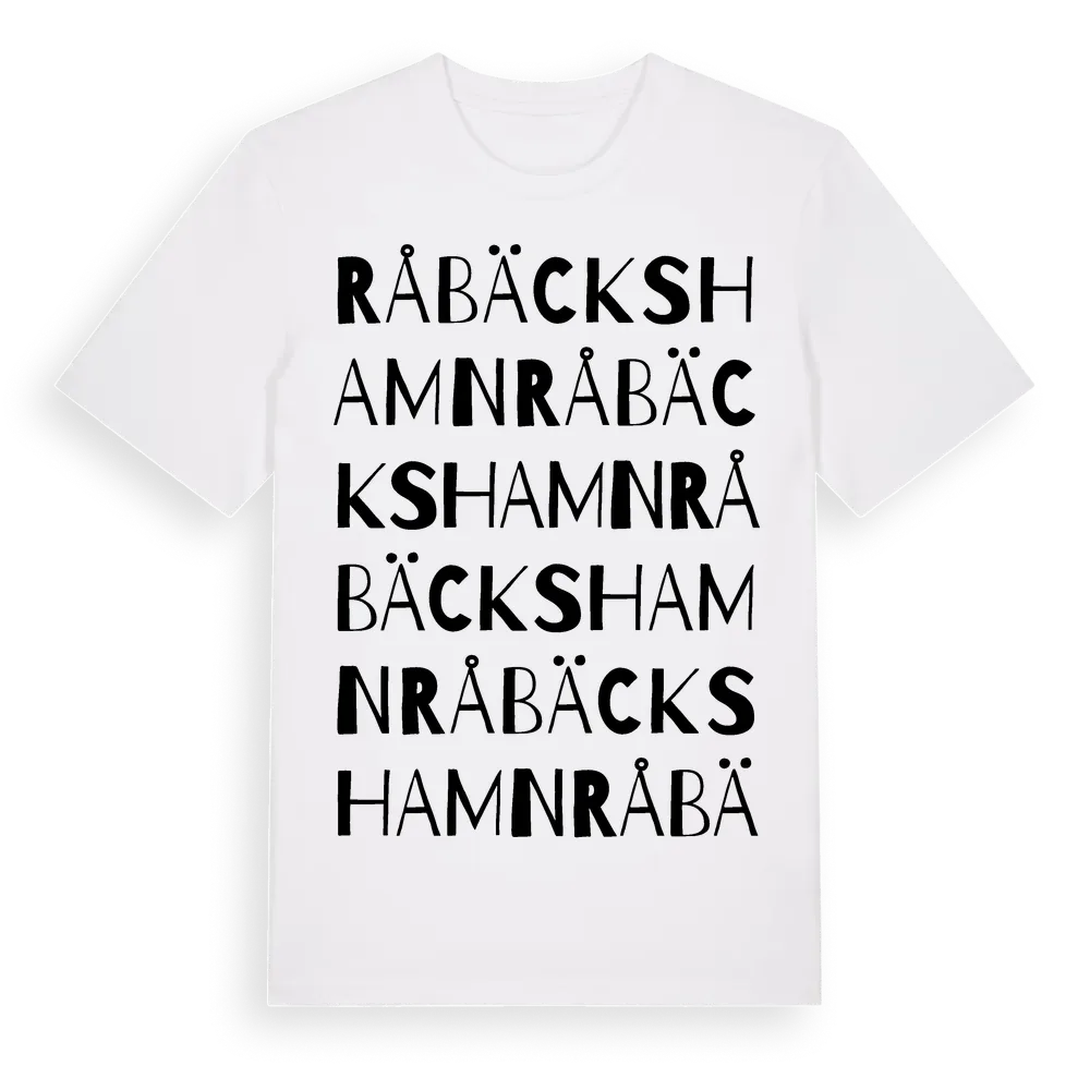 Råbäcks Hamn ordlek t-shirt är inspirerad av byn Råbäcks Hamn i Västra Götalands län, Sverige. Tröjan är designad för dig som har en speciell koppling till platsen – oavsett om du bor här, har rötterna här eller bara älskar Råbäcks Hamn.