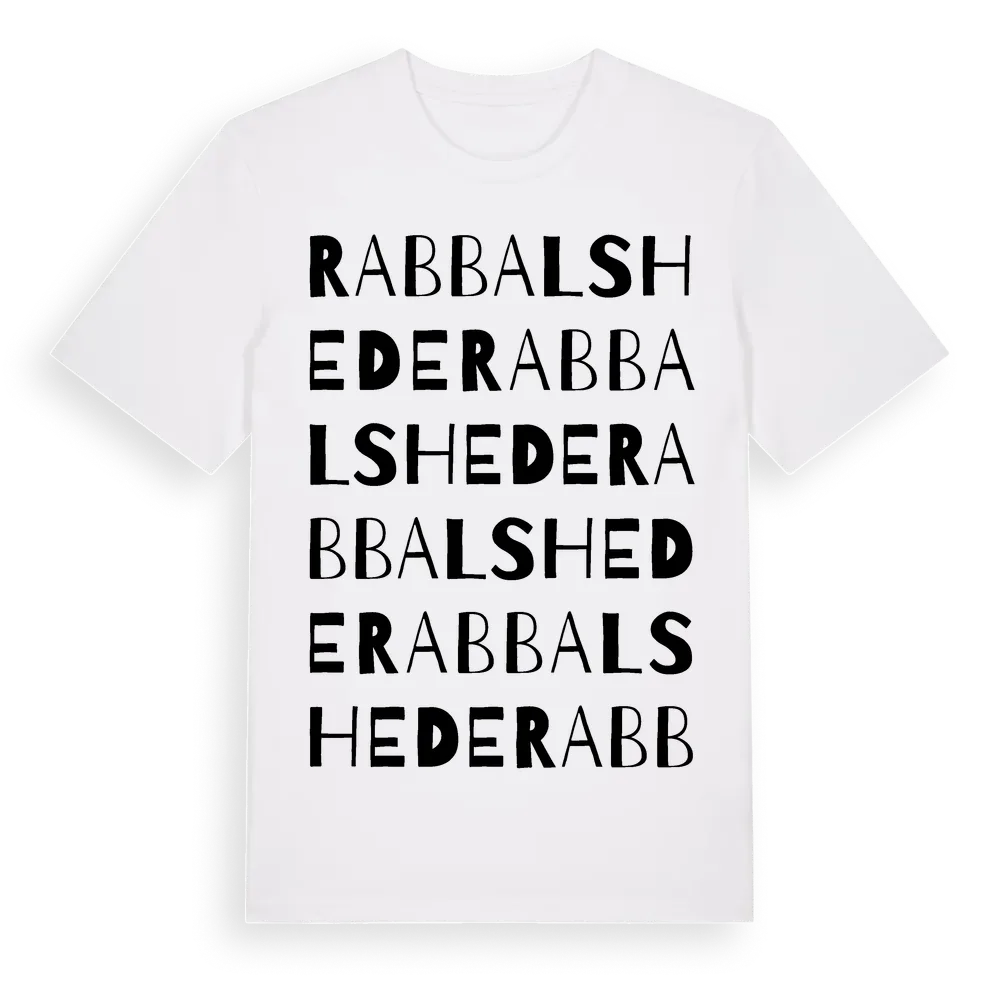 Rabbalshede ordlek t-shirt är inspirerad av byn Rabbalshede i Västra Götalands län, Sverige. Tröjan är designad för dig som har en speciell koppling till platsen – oavsett om du bor här, har rötterna här eller bara älskar Rabbalshede.