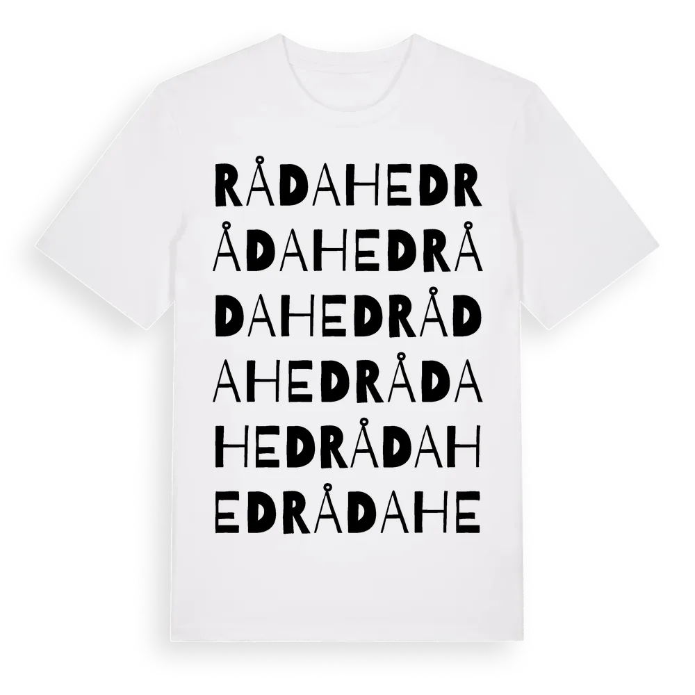 Rådahed ordlek t-shirt är inspirerad av Rådahed i Västra Götalands län, Sverige. Tröjan är designad för dig som har en speciell koppling till platsen – oavsett om du bor här, har rötterna här eller bara älskar Rådahed.