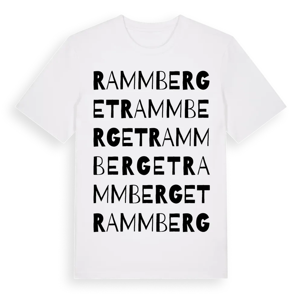 Rammberget ordlek t-shirt är inspirerad av Rammberget i Västra Götalands län, Sverige. Tröjan är designad för dig som har en speciell koppling till platsen – oavsett om du bor här, har rötterna här eller bara älskar Rammberget.