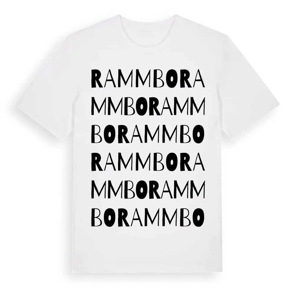 Rammbo ordlek t-shirt är inspirerad av Rammbo i Västra Götalands län, Sverige. Tröjan är designad för dig som har en speciell koppling till platsen – oavsett om du bor här, har rötterna här eller bara älskar Rammbo.