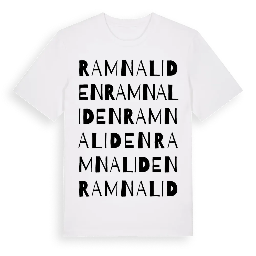 Ramnaliden ordlek t-shirt är inspirerad av Ramnaliden i Västra Götalands län, Sverige. Tröjan är designad för dig som har en speciell koppling till platsen – oavsett om du bor här, har rötterna här eller bara älskar Ramnaliden.