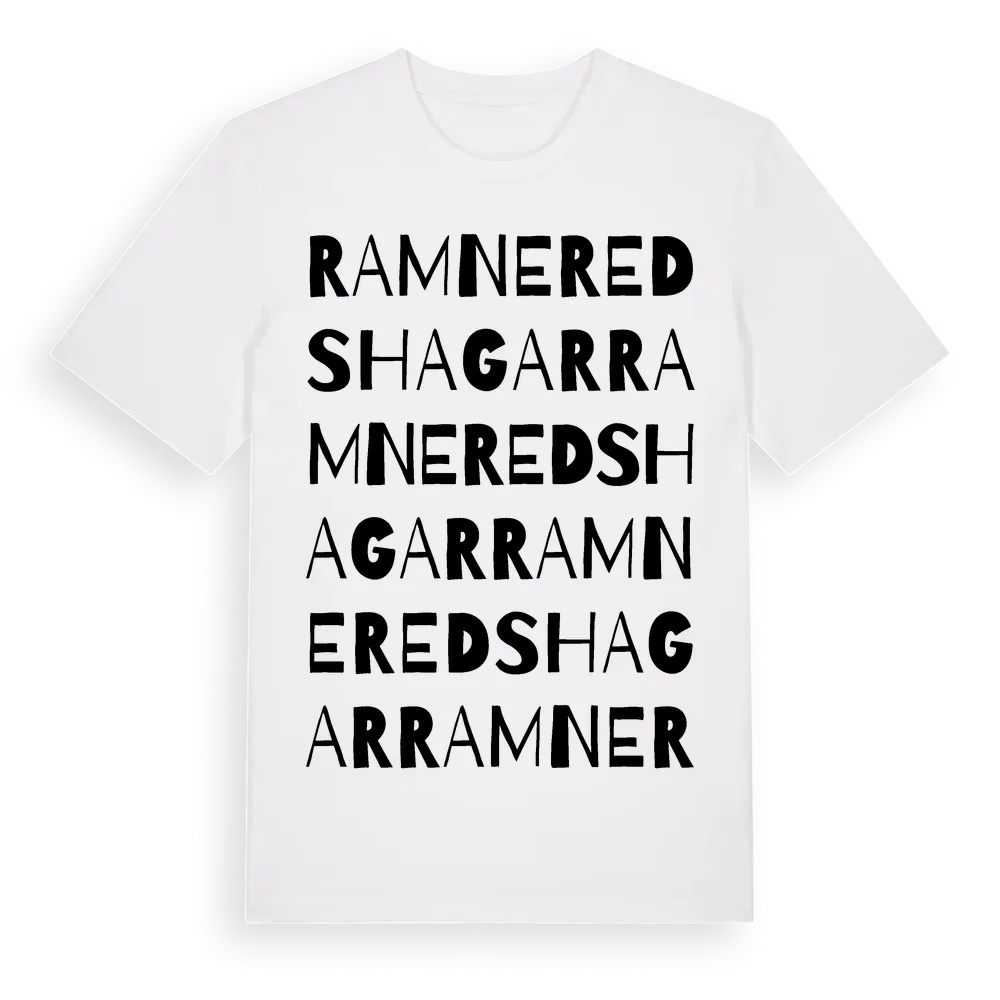 En ordlek byggd på Ramneredshagars namn. Subtilt och klurig – ett motiv som bara de som verkligen känner platsen fullt ut förstår. Premium bomull, unisex – från Ramneredshagar i Västra Götalands län.