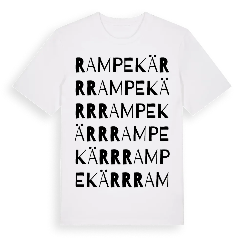 En ordlek byggd på Rampekärrs namn. Subtilt och klurig – ett motiv som bara de som verkligen känner platsen fullt ut förstår. Premium bomull, unisex – från Rampekärr i Västra Götalands län.