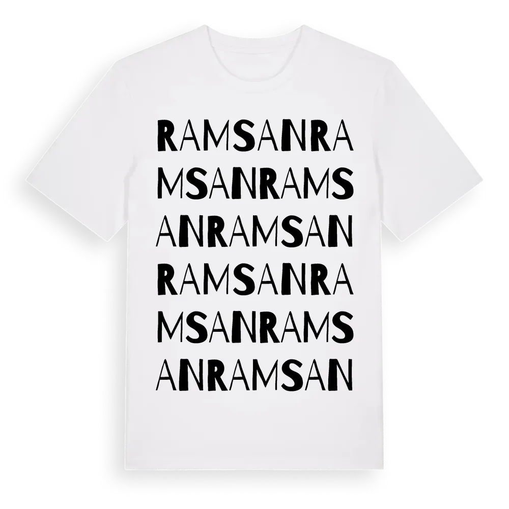 Ramsan ordlek t-shirt är inspirerad av Ramsan i Västra Götalands län, Sverige. Tröjan är designad för dig som har en speciell koppling till platsen – oavsett om du bor här, har rötterna här eller bara älskar Ramsan.