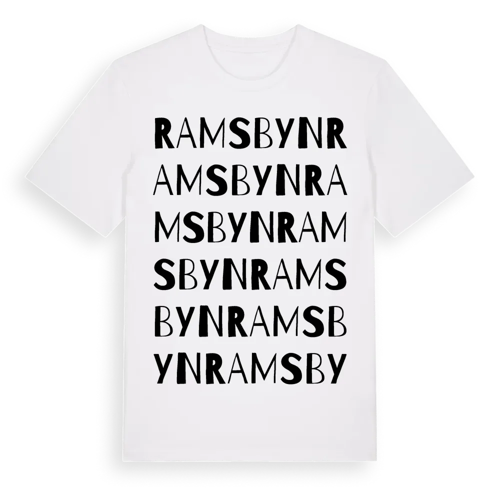 Ramsbyn ordlek t-shirt är inspirerad av byn Ramsbyn i Västra Götalands län, Sverige. Tröjan är designad för dig som har en speciell koppling till platsen – oavsett om du bor här, har rötterna här eller bara älskar Ramsbyn.