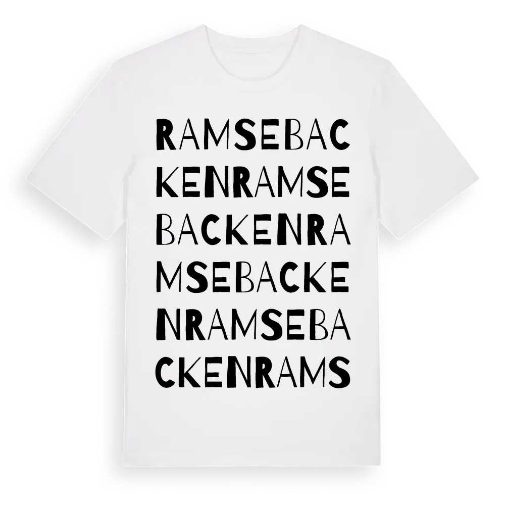 En ordlek byggd på Ramsebackens namn. Subtilt och klurig – ett motiv som bara de som verkligen känner platsen fullt ut förstår. Premium bomull, unisex – från Ramsebacken i Västra Götalands län.