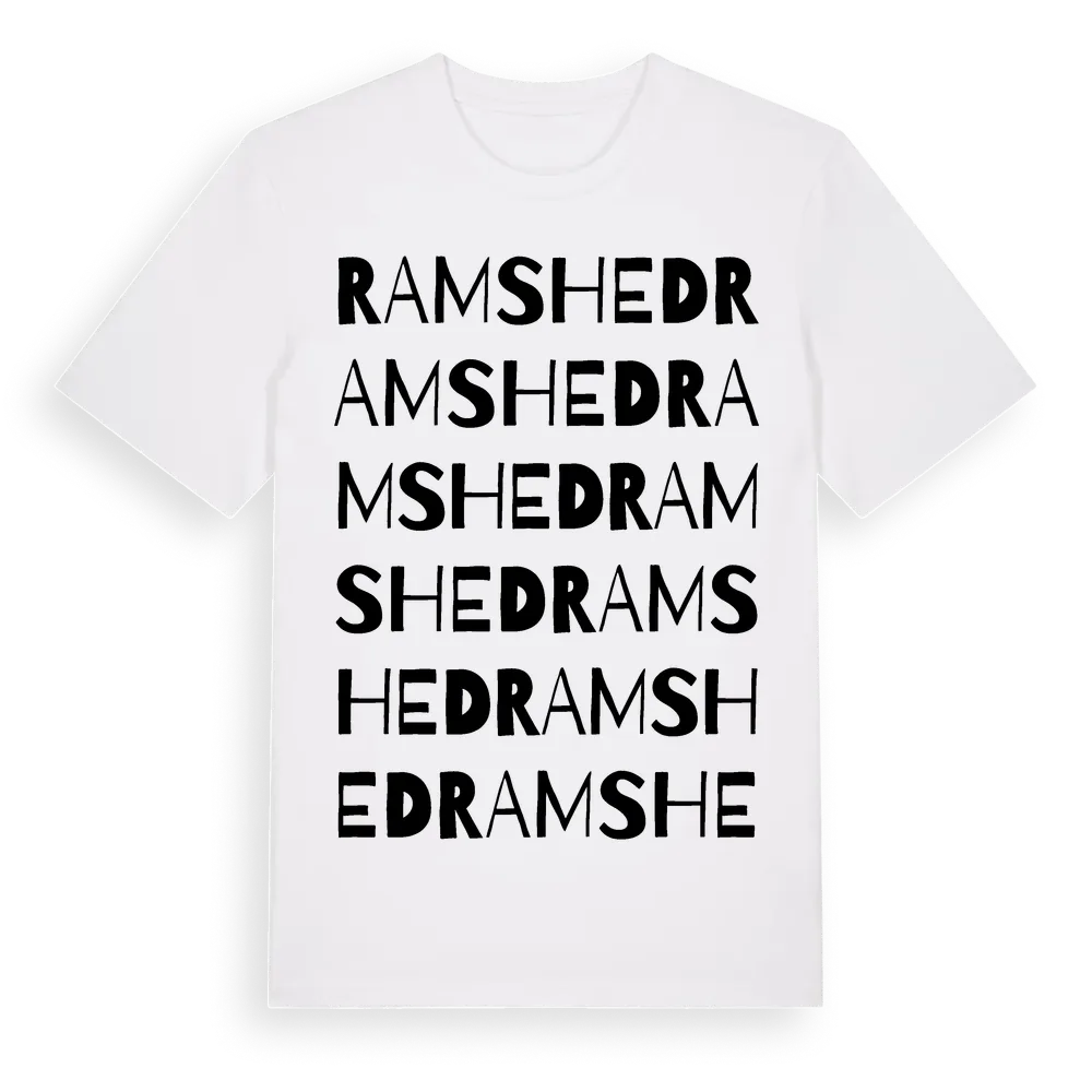 Ramshed ordlek t-shirt är inspirerad av byn Ramshed i Västra Götalands län, Sverige. Tröjan är designad för dig som har en speciell koppling till platsen – oavsett om du bor här, har rötterna här eller bara älskar Ramshed.