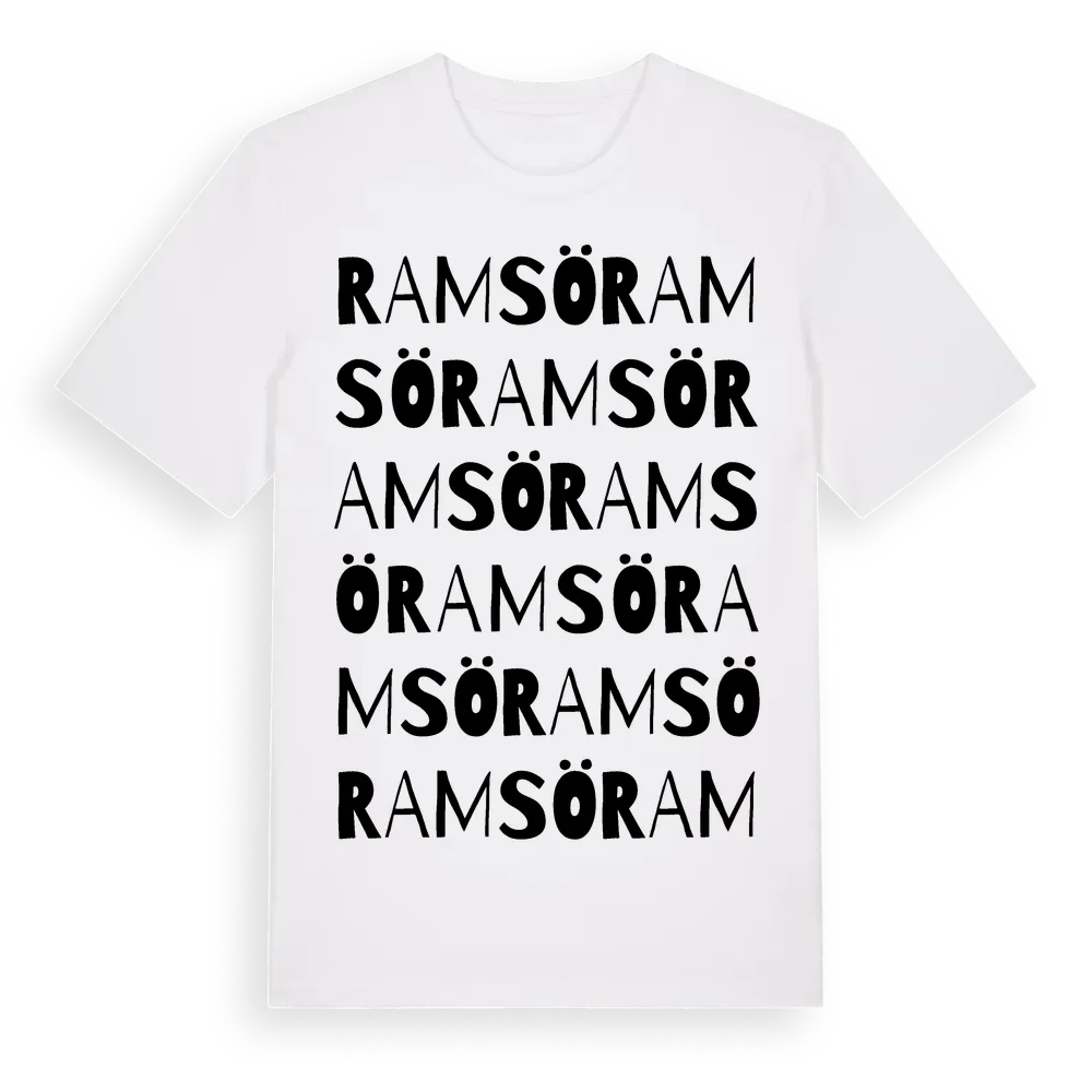 En ordlek byggd på Ramsös namn. Subtilt och klurig – ett motiv som bara de som verkligen känner platsen fullt ut förstår. Premium bomull, unisex – från ön Ramsö i Västra Götalands län.