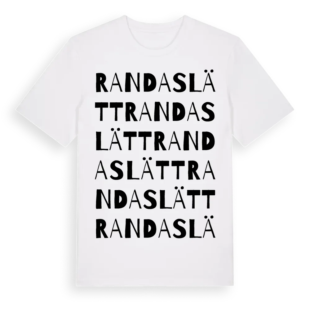 Randaslätt ordlek t-shirt är inspirerad av Randaslätt i Västra Götalands län, Sverige. Tröjan är designad för dig som har en speciell koppling till platsen – oavsett om du bor här, har rötterna här eller bara älskar Randaslätt.
