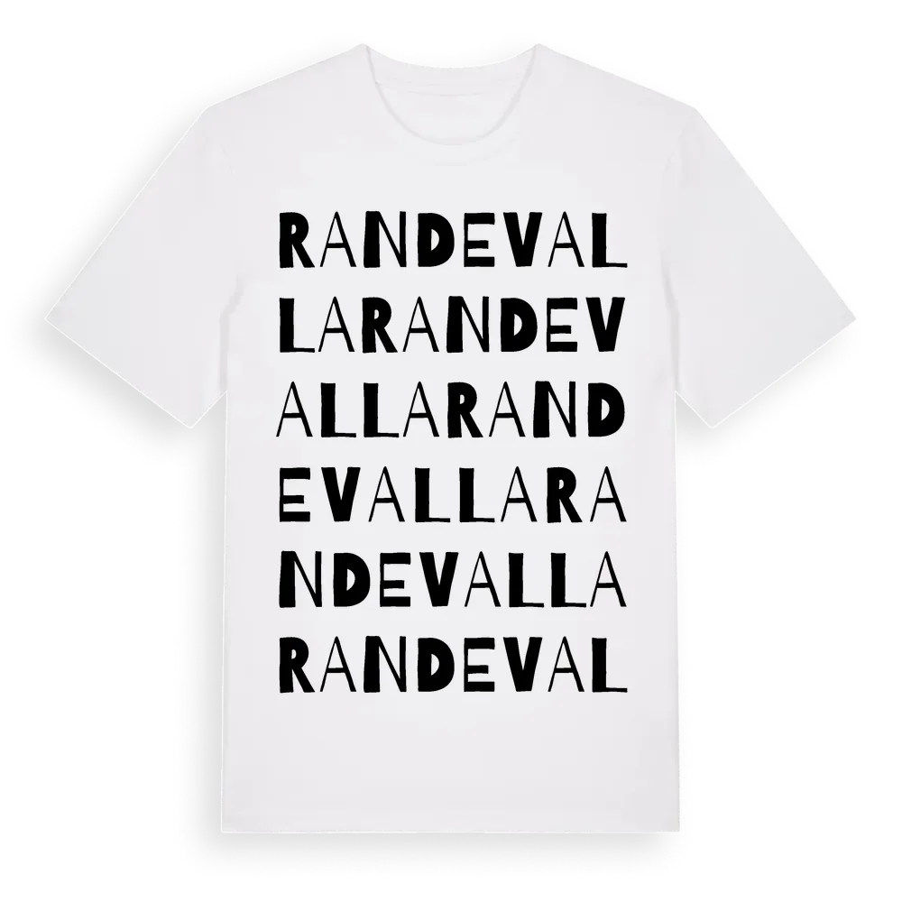 Randevalla ordlek t-shirt är inspirerad av Randevalla i Västra Götalands län, Sverige. Tröjan är designad för dig som har en speciell koppling till platsen – oavsett om du bor här, har rötterna här eller bara älskar Randevalla.