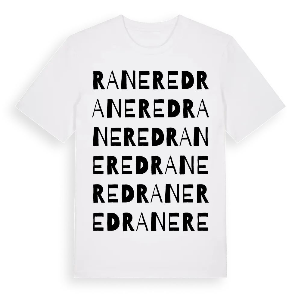 Ranered ordlek t-shirt är inspirerad av byn Ranered i Västra Götalands län, Sverige. Tröjan är designad för dig som har en speciell koppling till platsen – oavsett om du bor här, har rötterna här eller bara älskar Ranered.