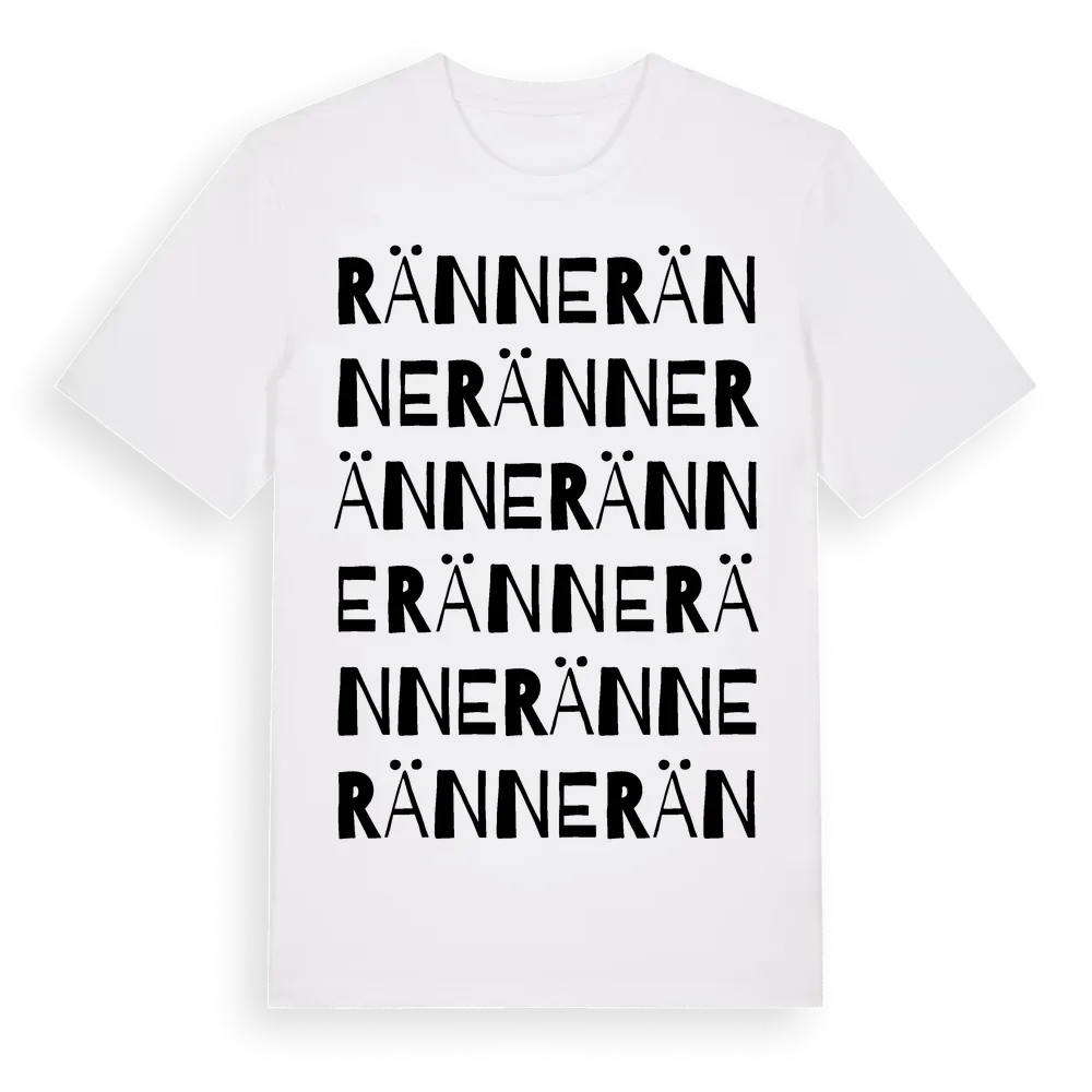 Ränne ordlek t-shirt är inspirerad av byn Ränne i Västra Götalands län, Sverige. Tröjan är designad för dig som har en speciell koppling till platsen – oavsett om du bor här, har rötterna här eller bara älskar Ränne.