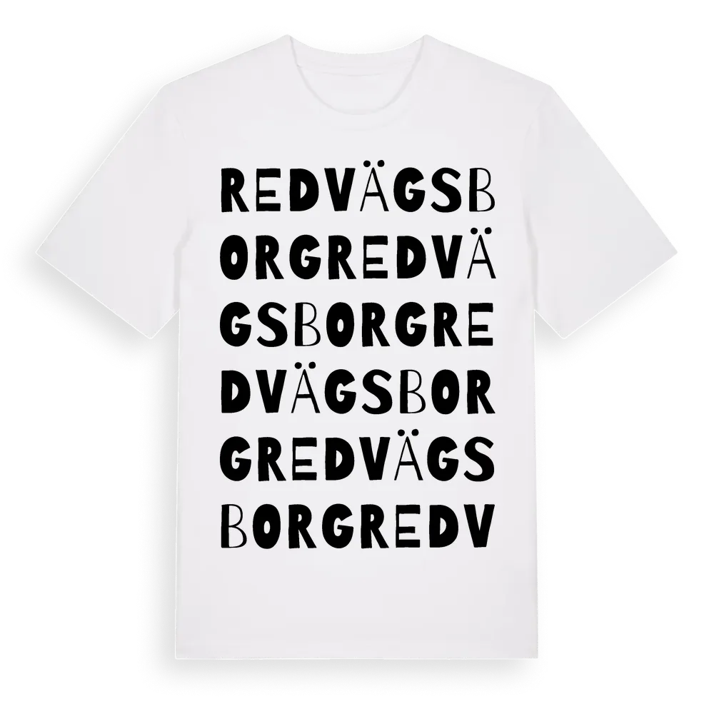 Redvägsborg ordlek t-shirt är inspirerad av byn Redvägsborg i Västra Götalands län, Sverige. Tröjan är designad för dig som har en speciell koppling till platsen – oavsett om du bor här, har rötterna här eller bara älskar Redvägsborg.