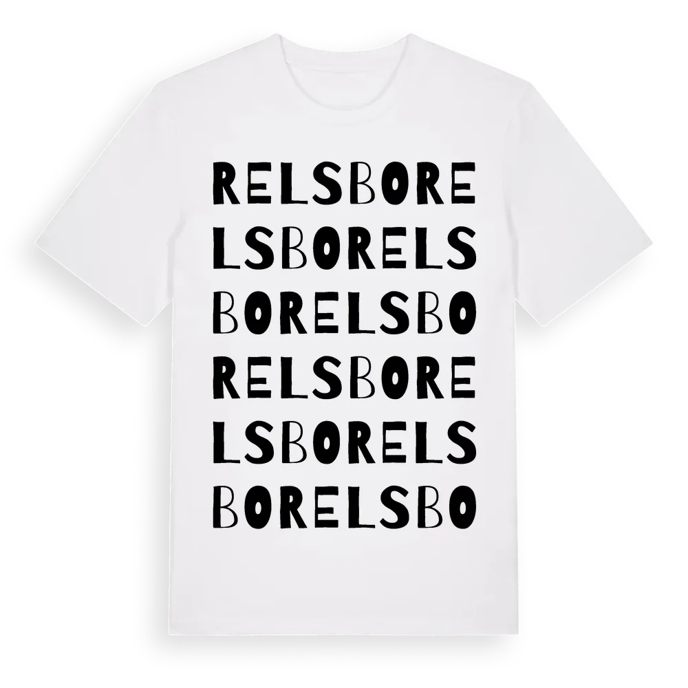 En ordlek byggd på Relsbos namn. Subtilt och klurig – ett motiv som bara de som verkligen känner platsen fullt ut förstår. Premium bomull, unisex – från Relsbo i Västra Götalands län.