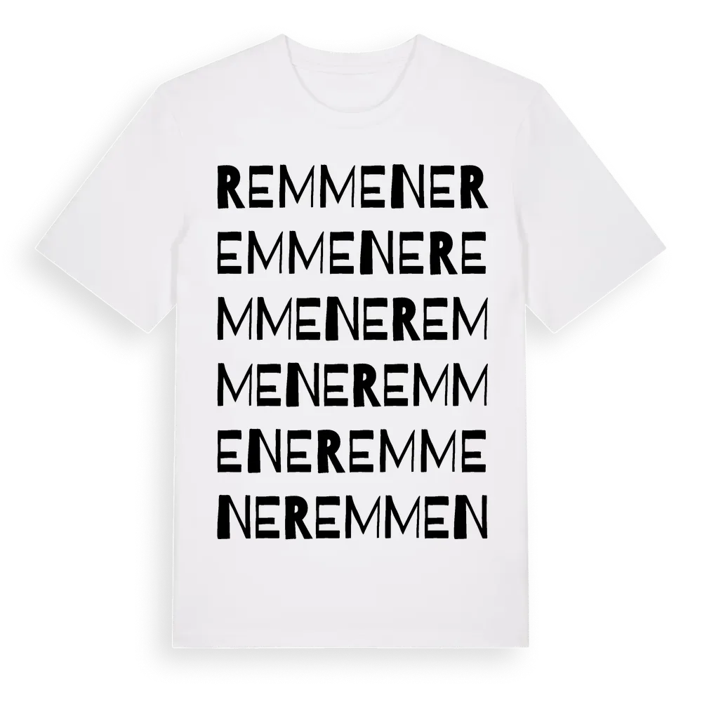 En ordlek byggd på Remmenes namn. Subtilt och klurig – ett motiv som bara de som verkligen känner platsen fullt ut förstår. Premium bomull, unisex – från Remmene i Västra Götalands län.